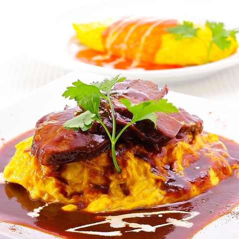 ふわとろ卵と秘伝のデミグラスソースが織りなす、至福のオムライス体験。一口で笑顔がこぼれる「エグロン」自慢の味をどうぞ♪ゆったりしたソファー席は、カップルやご家族、グループでの団らんに最適。子供椅子も完備でお子様連れも安心です。くつろぎの空間で、心温まるひとときをお過ごしください。