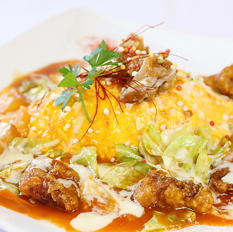 3種類の卵の形からお好みのスタイルを選べます。定番の「薄焼き卵で包むノーマルタイプ」、とろりとした食感の「フワフワトロトロのオープンタイプ」、そしてご飯の上にオムレツがのった話題の「ぱっかーんオムライス」。その日の気分に合わせて、50種以上のソースと組み合わせた自分だけの一皿をお楽しみください。