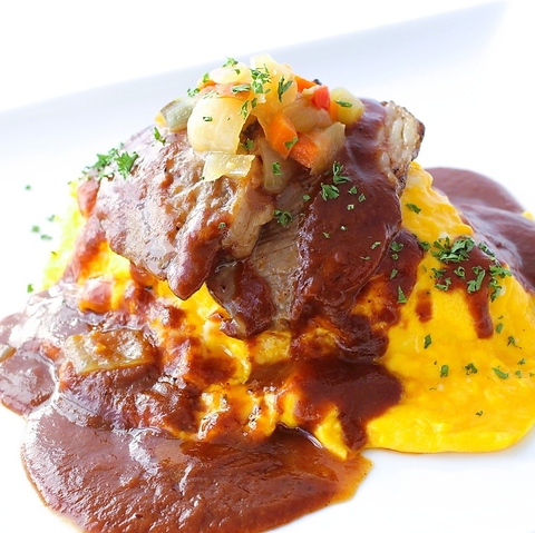 贅沢に国産牛のホホ肉を使い、じっくり煮込んで仕上げた最高級のデミグラスシチューをオムライスに!フォークを入れるとホロリと崩れるホホ肉の旨味と、深いコクのシチューが、専門店のふわとろ卵と見事に融合。一口食べるごとに感動を覚える、極上のごちそうです。