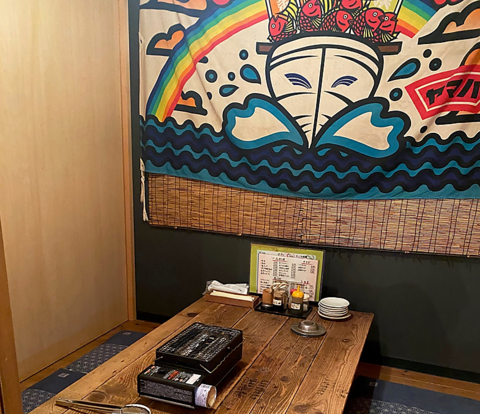 お仕事帰りにクイッといくのもOK!各お席にて貝や干物を焼いて頂きます。カウンター席と個室のご用意あり。
