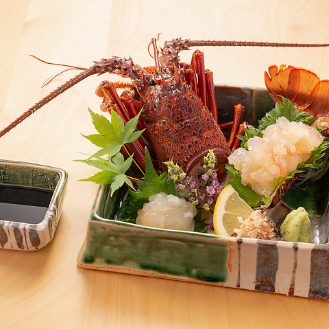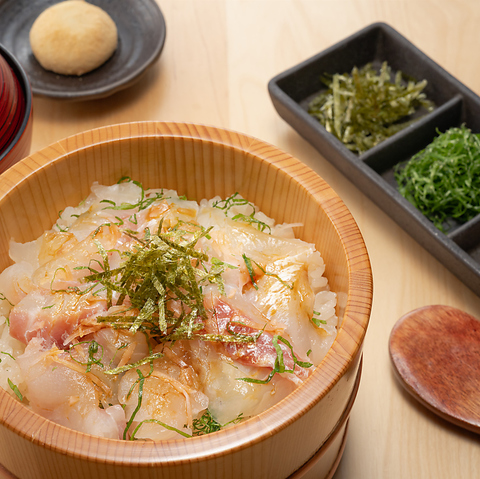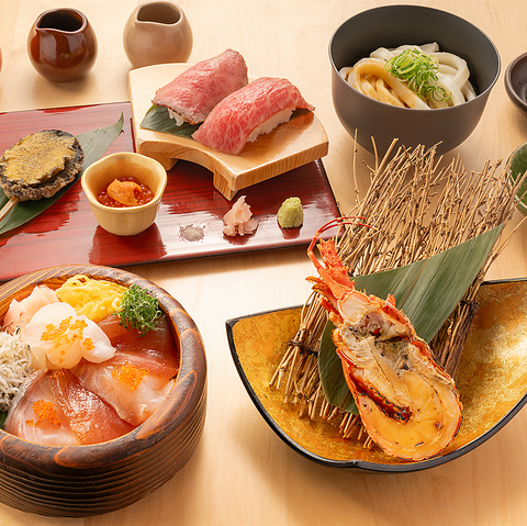 ゑびや屋台で販売をしている大人気商品の「あわび串」、ゑびや大食堂一番人気の「特製地魚のてこねずし」のミニ版、三重県の名物、松阪牛を使用したローストビーフ寿司、霜降り炙り寿司、伊勢名物の伊勢うどん。 ゑびやの人気商品を食べつくすことができる、とても贅沢なメニューです。
