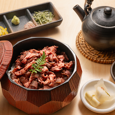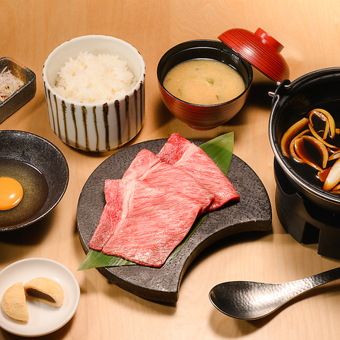 上質な松阪牛の霜降り肉、当店オリジナル和風だしを使った自慢の割り下。 卓上にて煮込んでいただくため、出来立ての牛丼をお召し上がりいただけます。 柔らかい松阪牛と広がる香りをお楽しみください。