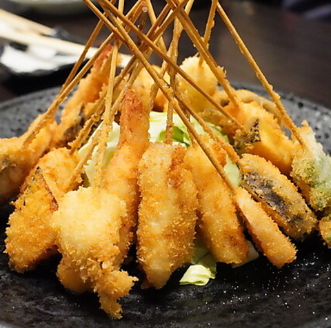 ボリューム満点の串揚げは、海老やイカ、ほたてといった20種類の食材から選べます!7本または15本のセットでも提供しているため、仲間とシェアするのもオススメ◎海の幸を贅沢に使った老若男女に人気の串揚げは、宴会やコース料理のもう1品にもぴったりです♪サクサク衣でお酒が進むこと間違いなし!