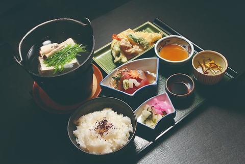 冬季限定、心も身体も温まる湯豆腐定食です。品数豊富でボリューミー、天ぷらやお刺身もついた満足感たっぷりの定食です。ご夫婦やお友達とのお食事をお楽しみいただけます。一番人気の懐石料理などもおすすめです◎