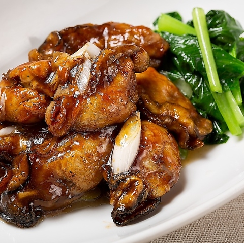 水飴をかけて乾燥させた後に焼くことで、皮は香ばしく「パリッ」とした食感に。独自の食感と旨味のあふれる逸品。
