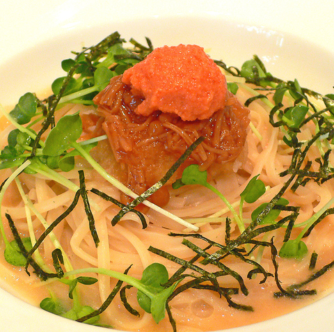 当店人気の明太子は、パスタに合うように明太子屋さんに作ってもらっている博多明太子です。市販品の明太子とは違い、ちょうどパスタに絡む明太子をご堪能ください♪写真は明太子となめたけおろしのパスタです。