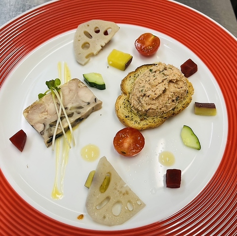 ![[オードブル]キノコと鶏肉のテリーヌ サーモンとハーブのムース、ガーリックトースト添え](https://imgfp.hotp.jp/IMGH/87/43/P049088743/P049088743_238.jpg)