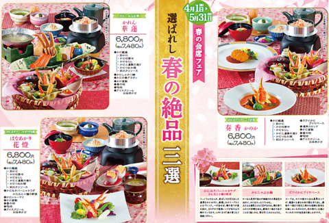 絶品三選 春の会席フェアを開催!是非ご予約お待ちしております ■奏香(かのか)7,480円(税込) ■華蓮(かれん)7,480円(税込) ■花燈(はなあかり)