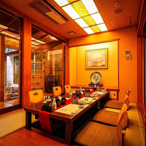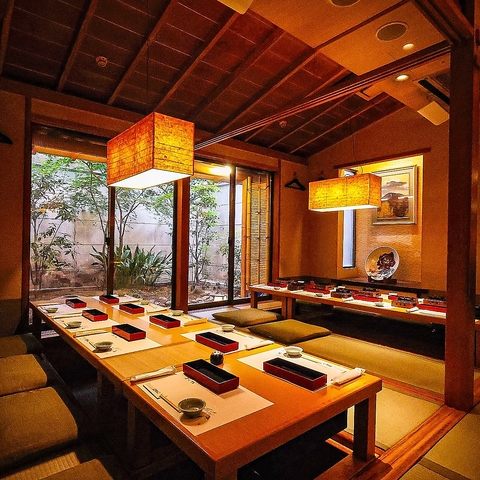 四季折々の風情を感じる庭園を眺めながら、ゆったりと味わう本格和食。お店ごとに内装が異なるのも『がんこ』の特徴。旅館のような落ち着いた空間で、職人が仕立てる逸品に舌鼓。風雅な景色と繊細な料理が織りなす、贅沢な食のひととき。ご家族やご友人、大切な方との特別な時間に適したお席を各種ご用意してお待ちしております。