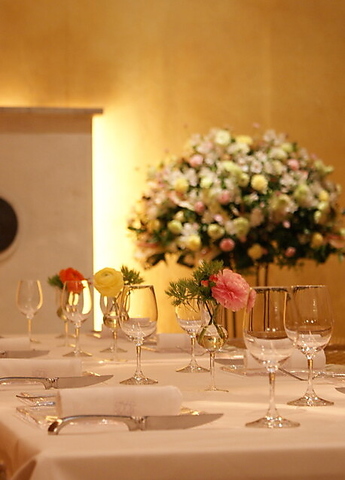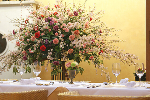 やわらかな太陽の光に包まれた1階テラスダイニング。四季の花々のアレンジメントが楽しめます。