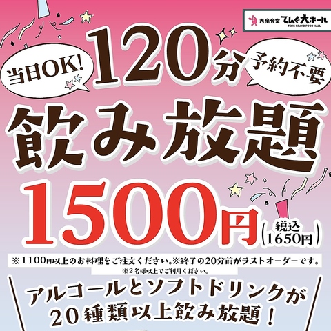 【当日OK!ご予約不要】120分飲み放題で1650円♪実施中