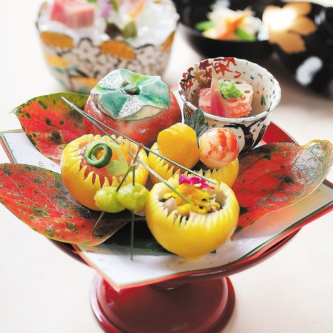 季節を感じられる食材を使用し、季節毎に様々な彩りを演出する会席料理。海の幸・山の幸を余すことなく使い、「日本の味」をお届け致します。