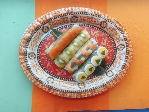 えびの生春巻きサーモンとアボカドの生春巻きキウイと生ハム、チーズの生春巻き