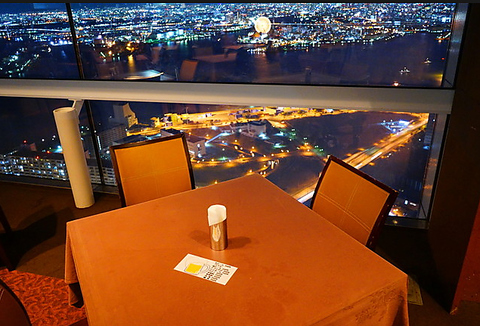 当店は展望レストランとなっております。大阪市内が一望できるのお席もございますので、夜は夜景をご覧になりながらお食事をお楽しみいただけます。