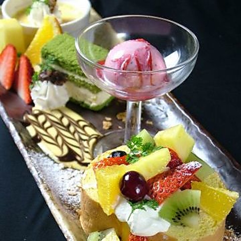 人気の自家製デザートの盛り合わせです。誕生日や記念日用の盛りつけも可能ですので、ご希望の方はお気軽にお問合せくださいませ。