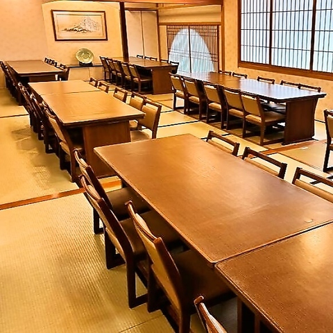 和の趣溢れるお座敷席は、宴会最大収容人数66名様までOK!畳の上に椅子とテーブルを設置したお席となります。職人が丹精込めて仕立てる日本ならではの食文化を味わう贅沢な時間。落ち着いた空間でじっくりお楽しみください。