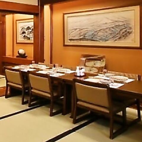畳のやわらかな感触と、落ち着いた和の趣が心をほどくお座敷席。畳の上に椅子とテーブルを設置したお席となります。店内総席数は350席をご用意しております。会社宴会、季節行事など、各種大型宴会のご予約を承っております。