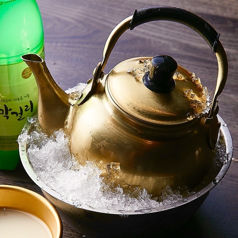 氷に沈んだやかんマッコリ!飲み終わるまでずっと冷たい!これからの時期にぴったりな最高のマッコリ!
