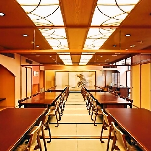 畳のやわらかな感触と、落ち着いた和の趣が心をほどくお座敷席。畳の上に椅子とテーブルを設置したお席となります。足を伸ばして座れるので、正座が苦手な方もご安心ください。会社宴会、季節行事など、各種大型宴会のご予約を承っております!