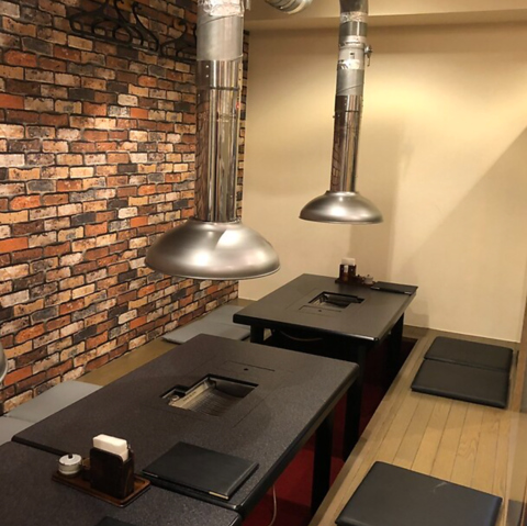 オードソックスな焼肉屋さんというイメージの店内ですが、設備は最新です。店内のすべてのお席に、「ヘルシーロースター(無煙ロースター)」を完備しておりますので、煙も一酸化炭素も出ませんので気になる臭いもつきません!
