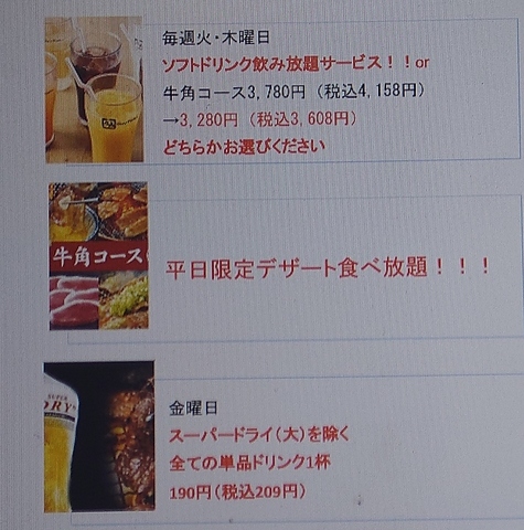 デザート食べ放題やソフトドリンク無料等平日はお得!!!店舗へ確認してみてください。