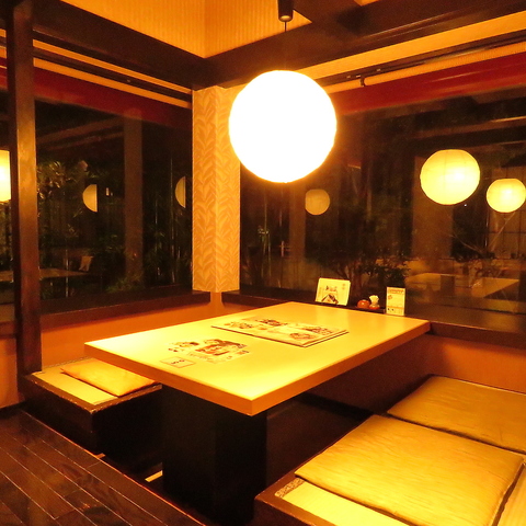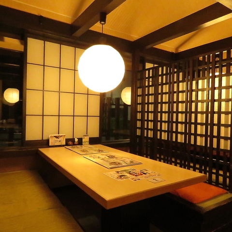 和モダンな店内は、掘りごたつの個室や座敷席等、人数に合わせて寛げる空間。