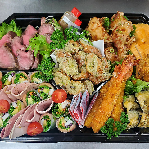 当店の味をご自宅でも♪各種お集まりに華を添える豪華なオードブルや、会議・行事に最適な仕出し弁当を種類豊富にご用意しております◎なお、ご注文数が多い場合は事前に余裕をもってご相談いただけますとスムーズにお渡し可能です。定休日(日・月)もお受けできる場合ありますので一度お問い合せください。皆様のご予約をお待ちしております!
