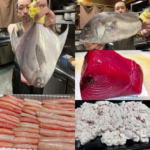 日替わりで10品以上仕入れてのお楽しみ鮮魚!今日のオススメ!大阪湾沖 マナガツオ!高級白身!焼霜造り♪和歌山産 コショウ鯛造り!活け〆良いです♪鳥取産 紅ズワイガニ!食べ易い剥き身!境港加工♪長崎産 生本マグロ赤身造り♪北海道産 タラ白子ポン酢♪