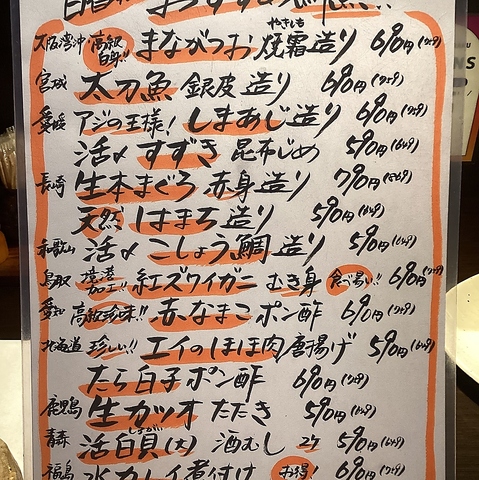 日替わりの鮮魚メニューが人気!毎日仕入れに奔走!産直もあり!鮮魚妥協なし!