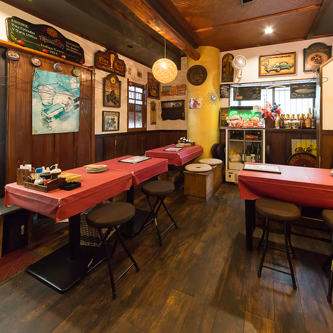 【店名や外観からは”いい意味で”想像できないアメリカンな空間】店内は、店主の趣味で集まったアメリカンな雑貨やインテリアに溢れたお洒落な雰囲気。そんな空間も楽しみながら、落ち着いてゆったりとお食事がお楽しみください◎