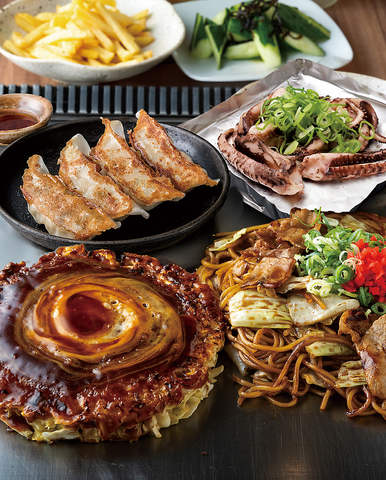 【鉄板料理】関西ではおなじみの粉もん文化は、ファミリー・カップル・友人同士で同じ鉄板を囲むコミュニケーションツールのひとつです。お好み焼きメインのお食事動機のお客様から、鉄板焼を酒の肴として楽しむ鉄板居酒屋使いのお客様まで、ニーズに合わせて、そして同時にお楽しみいただけます。
