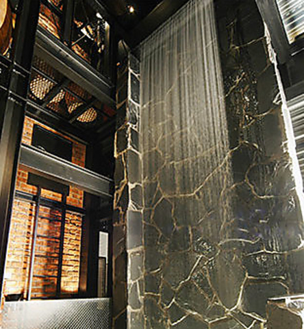 2階水槽より流れ落ちる大迫力の滝が入口入ってすぐに!!