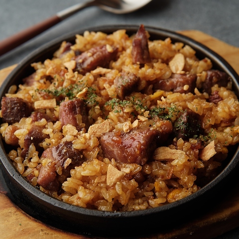 牛の旨みたっぷりのみんな大好きガーリックライス!!熱々鉄板でご提供致します!!