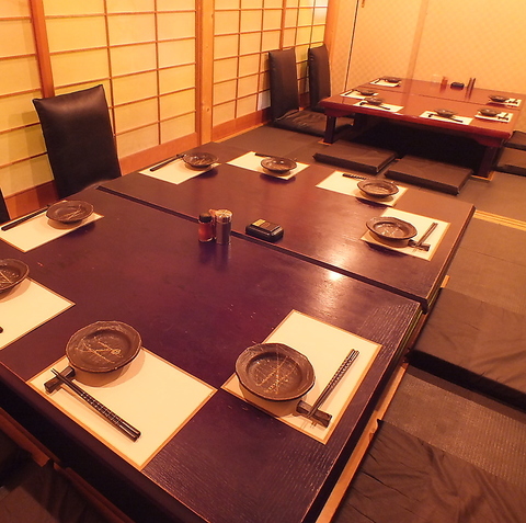人気の完全個室完備!6名様用と8名様用と14名様用をご用意。その他にも4名様~14名様用のカーテン個室や20名様まで対応の半個室もあります♪幹事様も安心のゆったりくつろげる空間です。