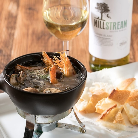 当店のコンセプトは“ワインとともに楽しむ、気軽なフレンチビストロ”。厳選した良質素材を使用し、シェフの独自のアイディアが光る逸品をお届けします。特におすすめの「天使の海老」3本と北海道産ブラウンマッシュルームのアヒージョは、海老の甘みとマッシュルームの深い旨味が絶妙に融合。ワインとの相性も抜群です。