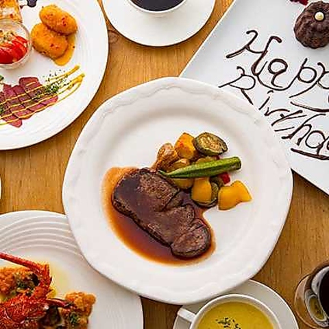 伊勢海老や肉料理の記念日コースをご用意。誕生日や記念日に大切な方との特別なディナーにぴったりですよ。