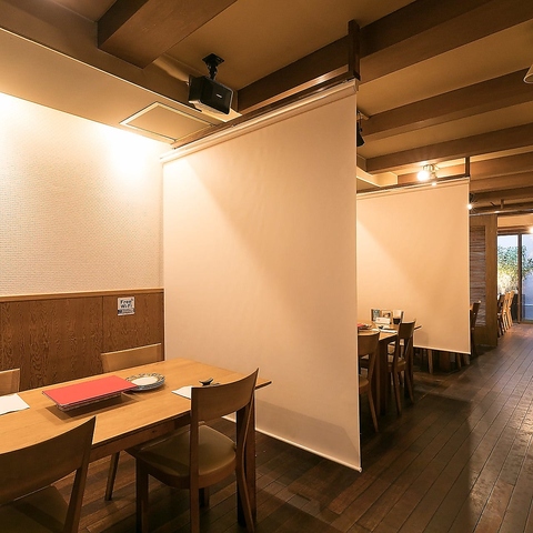 当店ではロールスクリーンで仕切られた三方囲まれた半個室空間を設けており、プライベート感を大切にしています。2名様でも4名様の席で斜め向かいに座ることができるため、デートや気軽なお食事にも最適です。周囲を気にせず、リラックスしたひとときをお楽しみいただけます。心地よい空間で、大切な人との特別な時間をお過ごしください。