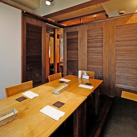 当店ではロールスクリーンで仕切られた三方囲まれた半個室空間を設けており、プライベート感を大切にしています。2名様でも4名様の席で斜め向かいに座ることができるため、デートや気軽なお食事にも最適です。周囲を気にせず、リラックスしたひとときをお楽しみいただけます。心地よい空間で、大切な人との特別な時間をお過ごしください。
