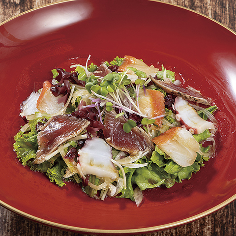 たっぷりの海の幸と新鮮野菜をざっくりと混ぜ合わせました。(季節により内容は異なります)