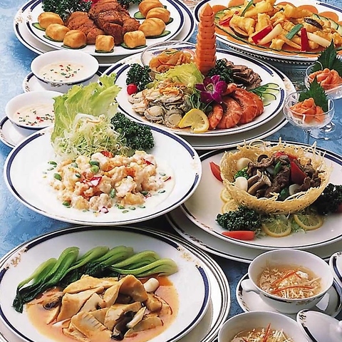 フカヒレスープも含まれた充実の内容です。+1,500円で120分飲み放題も追加可能。一番人気のプランです。