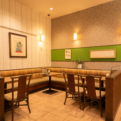 ゆったりとしたスペースでリラックスできるお席をご用意。温かみのある内装と心地よい照明が、落ち着いた雰囲気を演出。女子会や、ご家族とのご利用に最適です。また、窓際の席から明るい日差しが差し込み、穏やかな時間を楽しむことができます。居心地の良い空間で、美味しい料理と共に特別なひとときをお過ごしください。