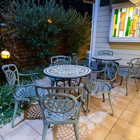 テラス席は、心地よい風を感じながらカフェタイムを楽しむことができます。天気の良い日は、開放的な空間でリラックスしながら、美味しいコーヒーやスイーツを味わうのに最適です。周囲の緑に囲まれた静かな雰囲気の中で、友人との会話や一人の時間を満喫していただけますので、特別なひとときをテラスでお過ごしください。
