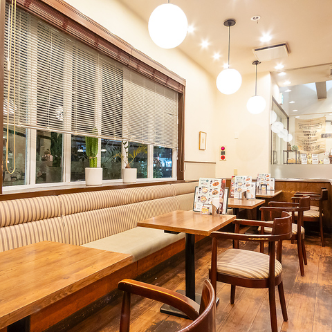温かみのある木材を基調とした店内は、居心地の良いリラックス空間をご提供しております。柔らかな照明が心を落ち着かせ、友人との語らいや一人での静かな時間など、思い思いの過ごし方でお楽しみいただけます。窓際の席からは外の景色を眺めながら、穏やかな時間を過ごすことができますので特別なひとときを満喫できます。