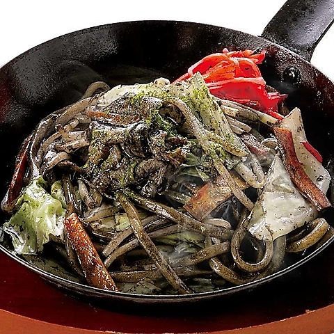 東京都にある調味料メーカー「ボールスタア」のイカスミ入り「東村山黒焼そばソース」を使ったご当地焼きそばです!