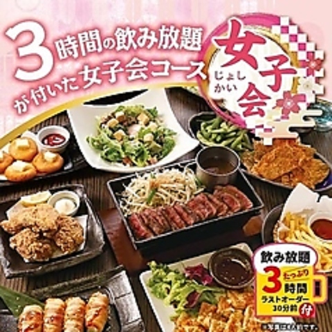 「ミスジステーキ」や「肉巻きおにぎり」なども楽しめる豪華な女子会コースは充実の3時間飲み放題付!