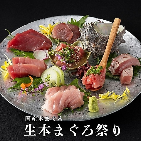 本まぐろの大トロ・中トロ・赤身の食べ比べ寿司3貫が980円、まぐろ中トロ寿司5貫は1580円!中トロ刺身1,480円や中トロ・赤身・胡麻まぐろ等の食べ比べ刺身盛りは1,180円~など大特価価格でご提供します!国産の生本まぐろを一本買い、冷凍せず生にこだわったまぐろをご賞味あれ!※まぐろが無くなり次第終了