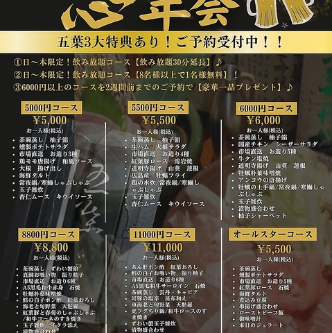 平日限定!4名様以上飲み放題30分無料延長、8名様以上でコース料金1名様無料♪詳細はクーポンページへ!