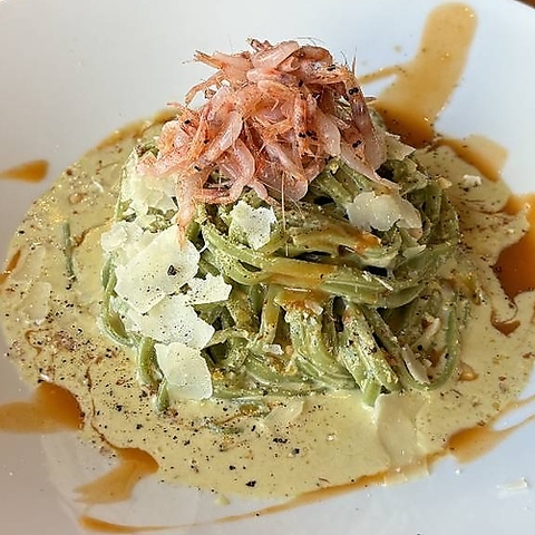 当店では、生パスタ きし麺を細目に仕上げた【タリオリーニ】 きしめんタイプの【フェットチーネ】 卵不使用の乾燥麺【スパゲッティ】もございます。女性に人気のもちもち生パスタは他では味わえない逸品 カナダカンでぜひご賞味あれ!