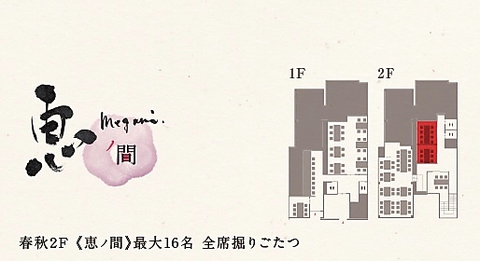 | 個室 | 18名様×1 | 海恵ノ間/全席掘りごたつ個室。18名様まで。 |