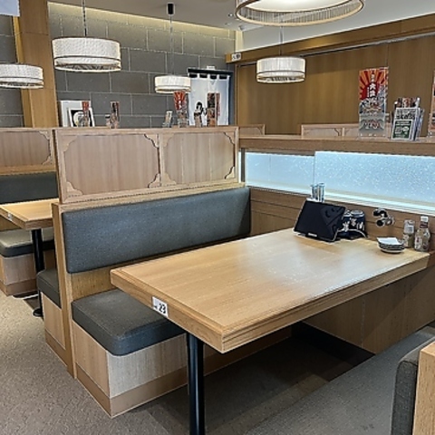 大人数でもゆったり6人掛けボックス。ベビーカーや車いすでもお食事しやすい可動椅子ボックス(写真)も1席ございます。